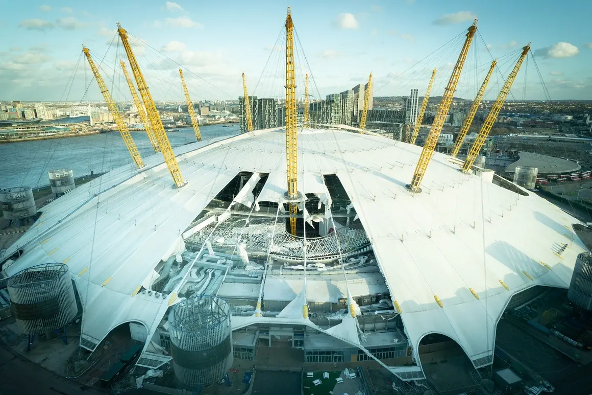O2 Arena изгуби част от покрива си след бурята "Юнис".
