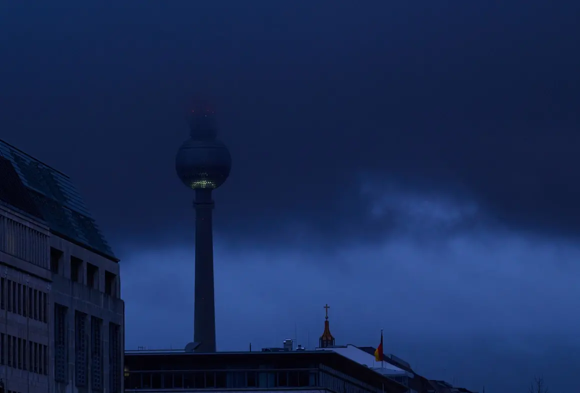 Телевизионната кула в Берлин на фона на мрачното небе. Ураганът "Зейнеп" идва в столицата малко след утихването на друга буря на име "Юления"