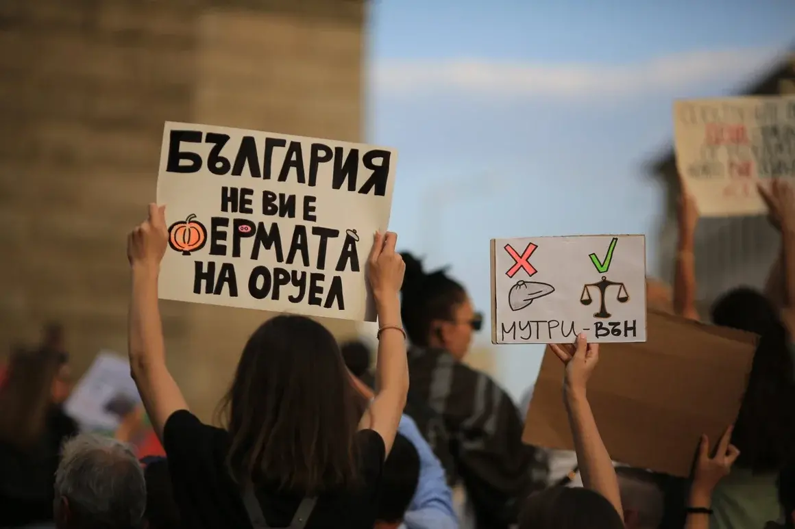 "България не ви е фермата на Оруел" - препратка към антиутопията на известния британски писател, публикувана през 1945 г. Историята на романа разказва за ферма, управлявана от животни, която е умален модел на всяка държава.
