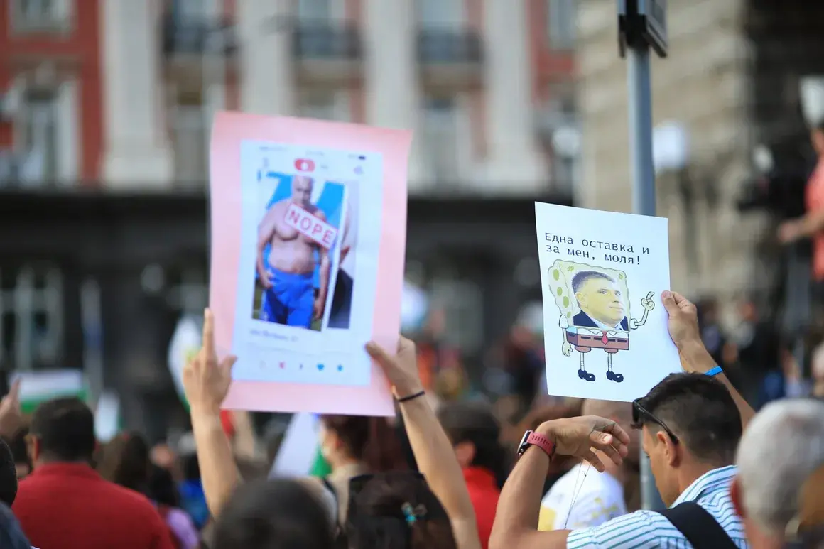 "Кралю Слънце, дойдохме да видим залеза ти!!!", пишат демонстрантите на своите плакати. Други изтъкват, че не са "радевисти" и "божковисти", а "просто хора".