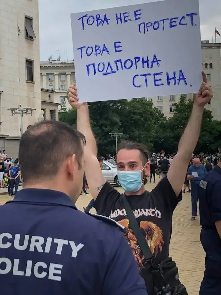 "Помощ, заобиколен съм от тулупи" - плакатът е препратка към думите на Борисов, когато през май той се обърна с тях към част от гражданите. Премиерът описа тежкото си всекидневие - извън брифингите всеки ден работел с щаба, за да спорят относно различните мерки. "Без събота, без неделя, докато някои тулупи спят до обяд и после пишат постове", каза тогава министър-председателят.