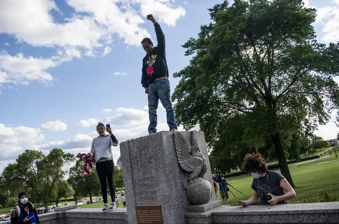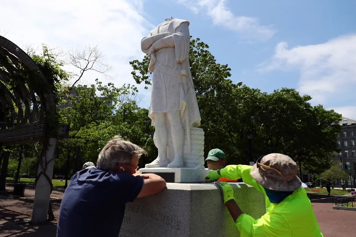 Работници премахват останалата част от вандализирания паметник на Христофор Колумб в Бостън
