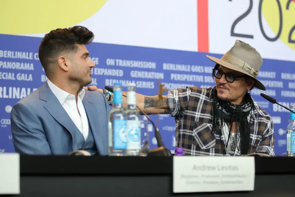 Деп и режисьорът на "Минамата" Андрю Левитас на пресконференця на "Берлинале"