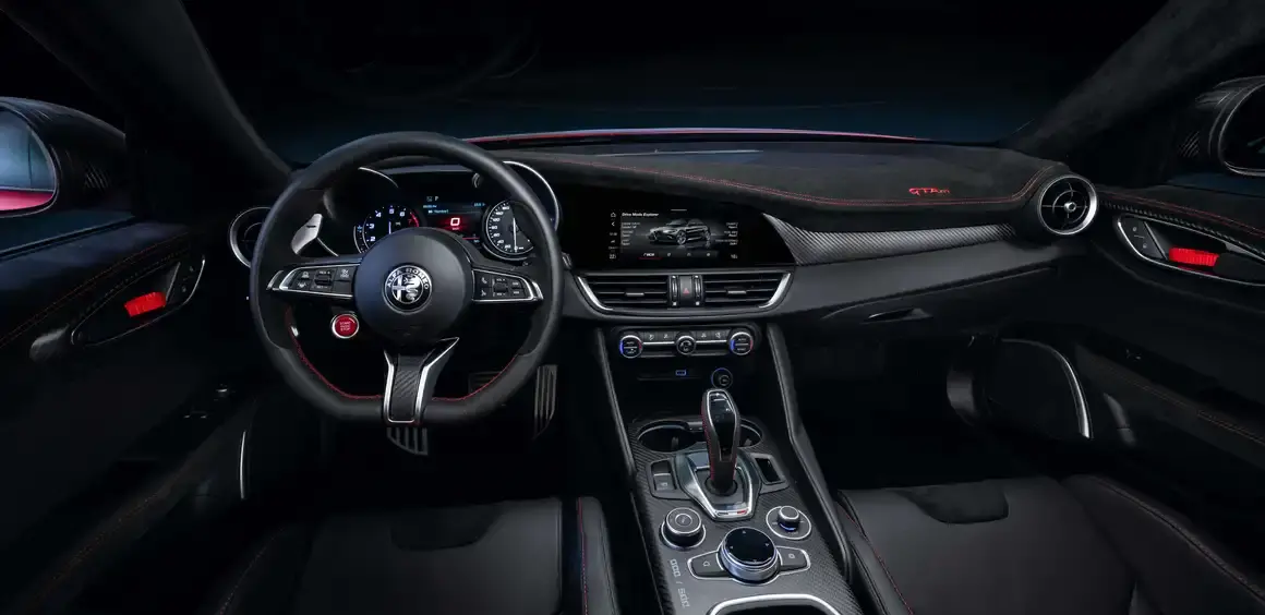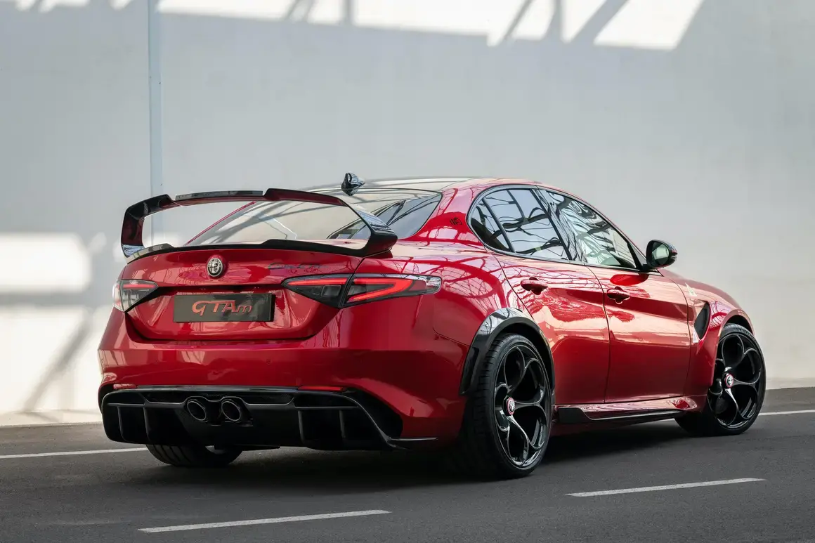 Giulia GTA е с изпускателна система на Akrapovic, интегриран карбонов заден дифузьор и 20-цолови алуминиеви джанти.