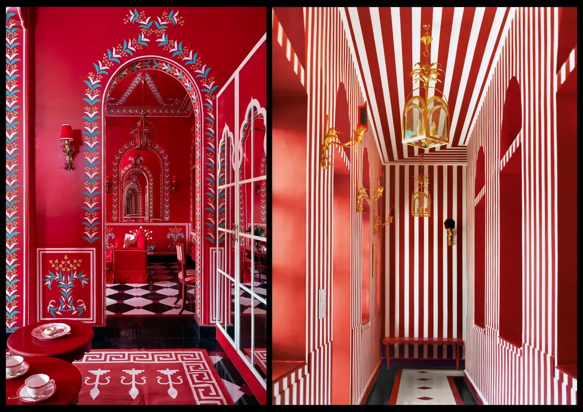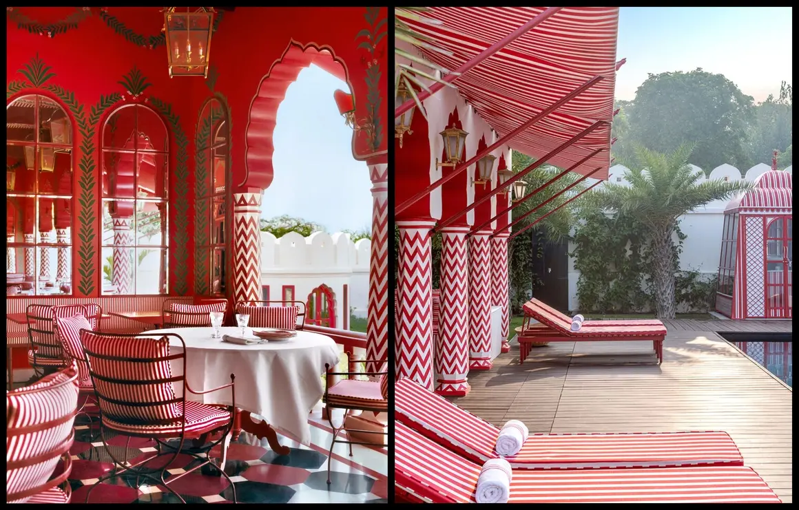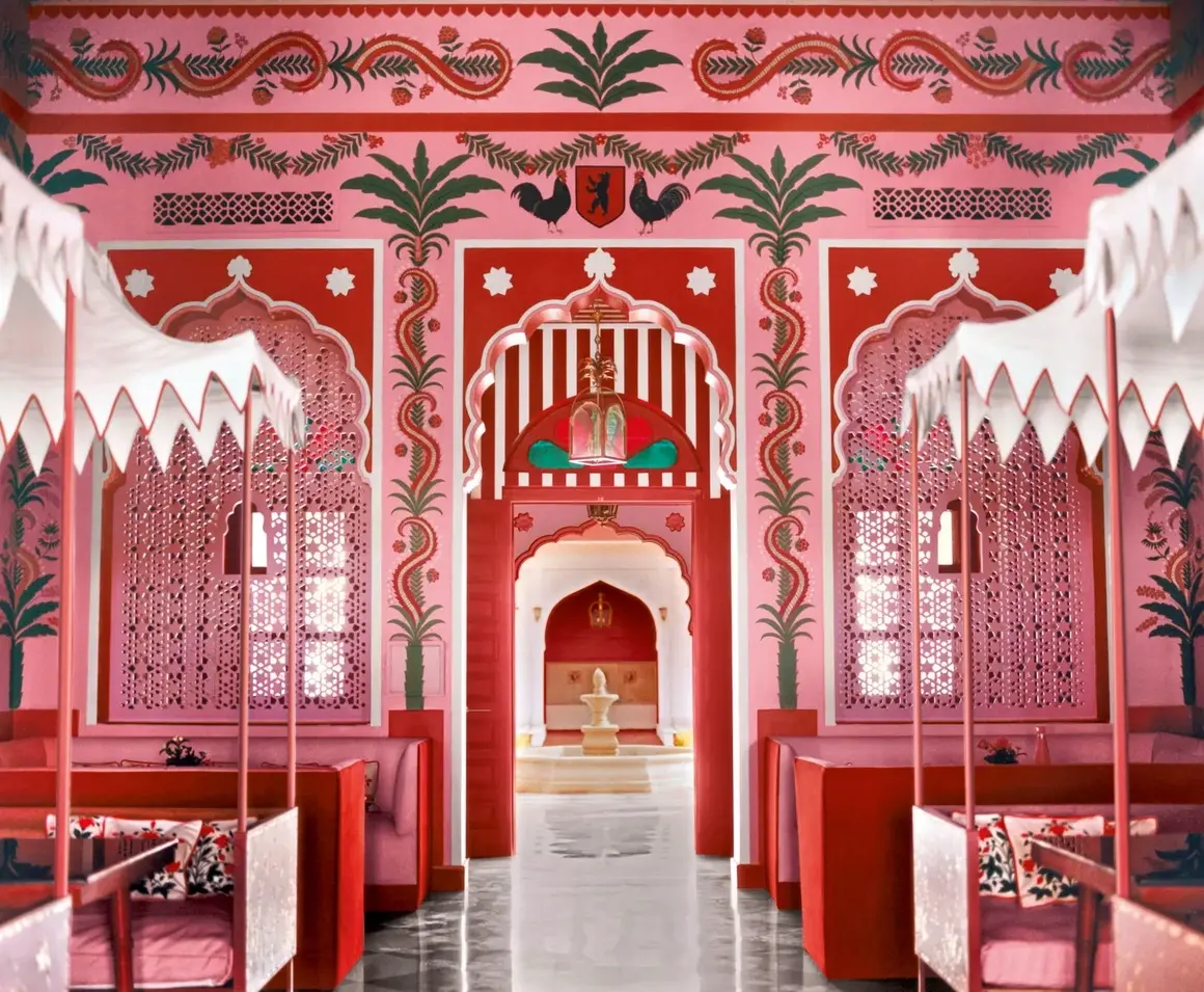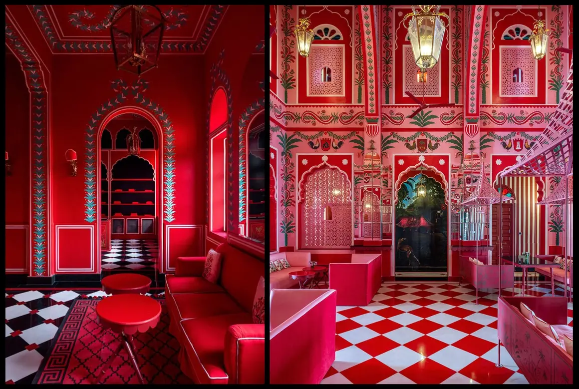 Хотелът не е украсен с флоралните или геометрични шарки, с които е известен Джайпур. Стените са в алено червено - като одеждите на римокатолическите кардинали, и нарове, вдъхновени от картините на Ботичели. Друг често срещан елемент са палмите.