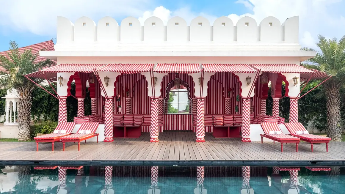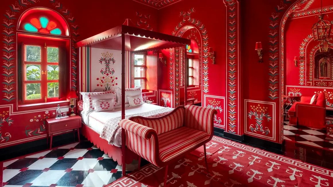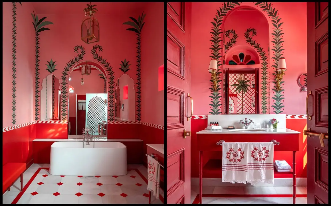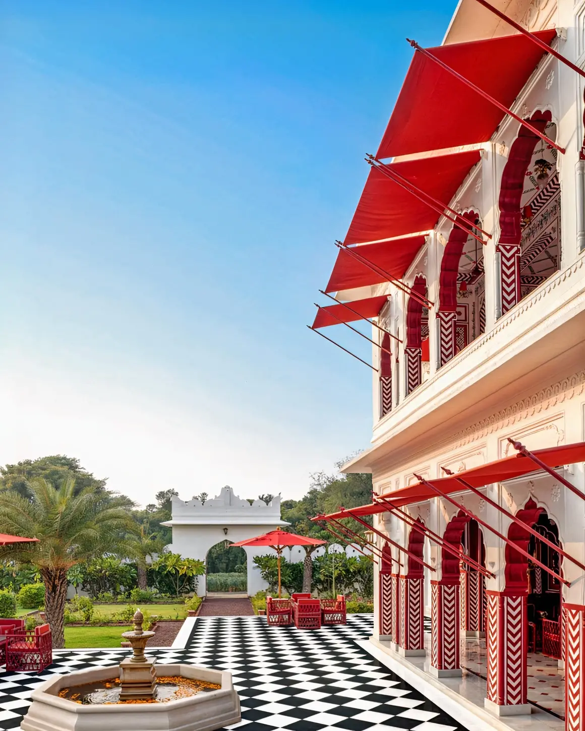 Хотелът не е украсен с флоралните или геометрични шарки, с които е известен Джайпур. Стените са в алено червено - като одеждите на римокатолическите кардинали, и нарове, вдъхновени от картините на Ботичели. Друг често срещан елемент са палмите.
