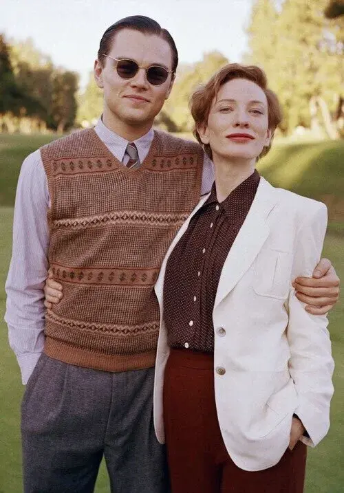 Кейт Бланшет и Леонардо ди Каприо на снимачната площадка на филма "Авиаторът" от 2004