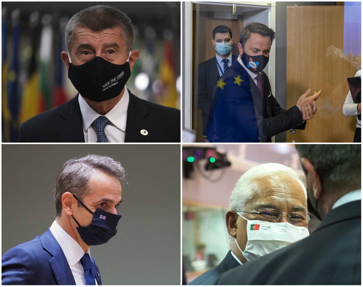 Първият Съвет със задължително носене на предпазни маски даде интересен поглед към избора на държавните ръководители. Чешкият премиер Андрей Бабиш се появи с тъмна маска със слоган "Да хакнем кризата!". Надписът върху лицето на министър-председателя на Люксембург Ксавие Бетел гласи "MOIEN" - "Добро утро / Здравей", традиционен поздрав в родната му страна.
