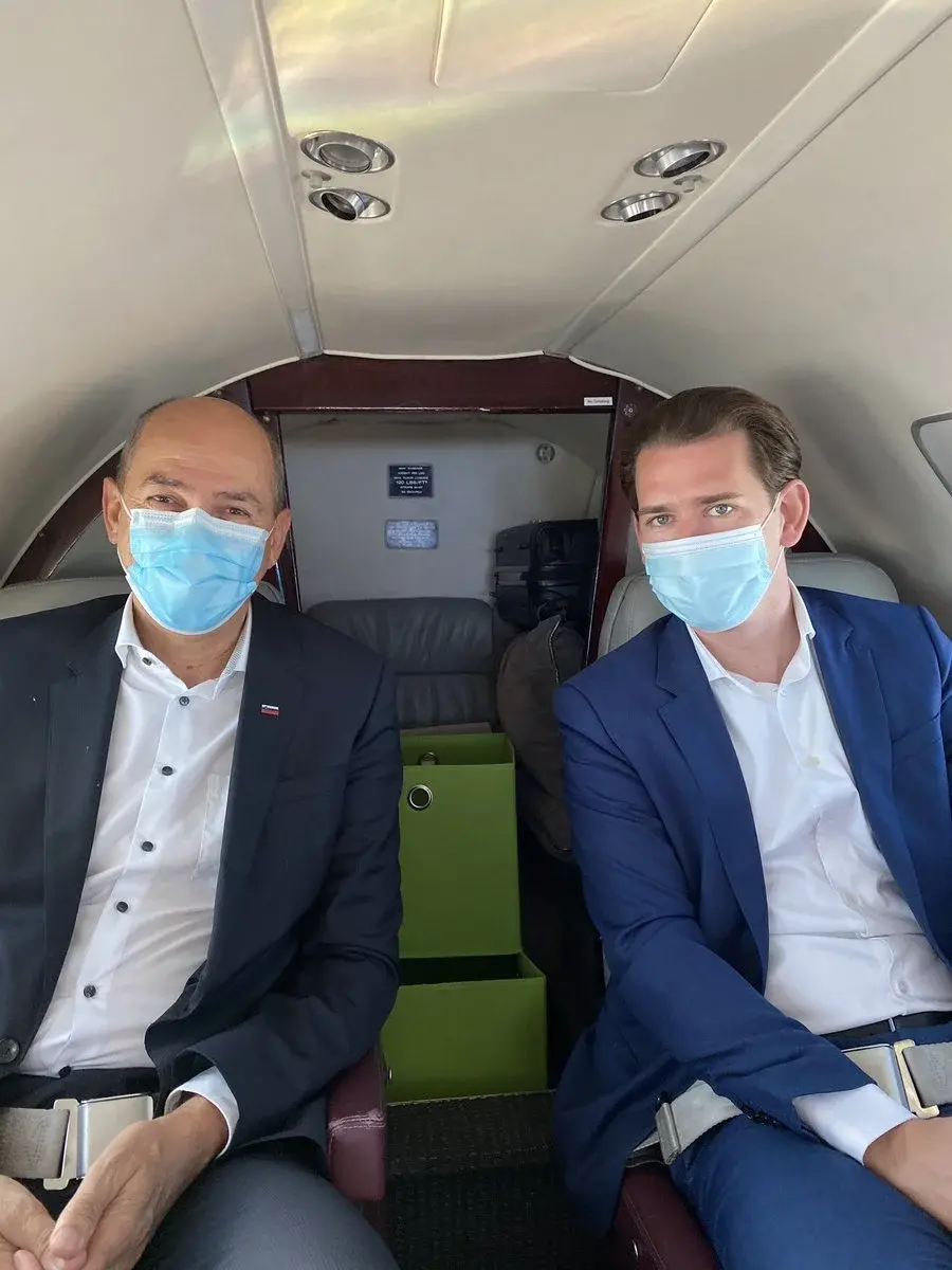 Премиерът на Словения Янез Янша и канцлерът на Австрия Себастиан Курц пътуваха заедно за Европейския съвет. "Споделено пътуване с "пестелив" самолет до Брюксел", написа Янша в профила си в Twitter, в опит за шега с блокиралите преговори за финансова помощ и съпротивата срещу по-щедрите плащания от страна на "стиснатата четворка" - Австрия, Дания, Швеция и Нидерландия.