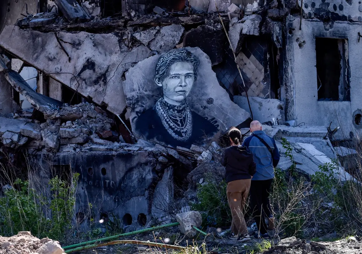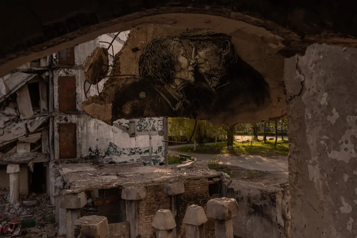 Уличният артист изработва два стенописа на командира в Ирпин и Бородянка, които са опустошени от руската окупация.