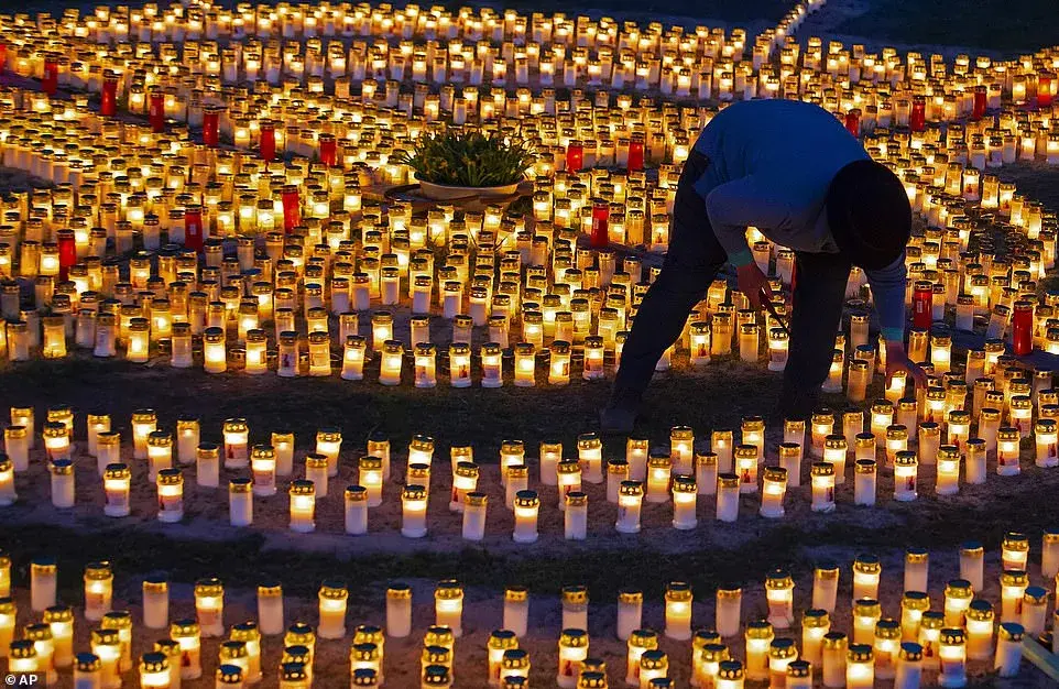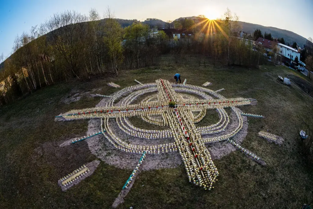 Германка направи кръст от свещи в памет на жертвите от Covid-19