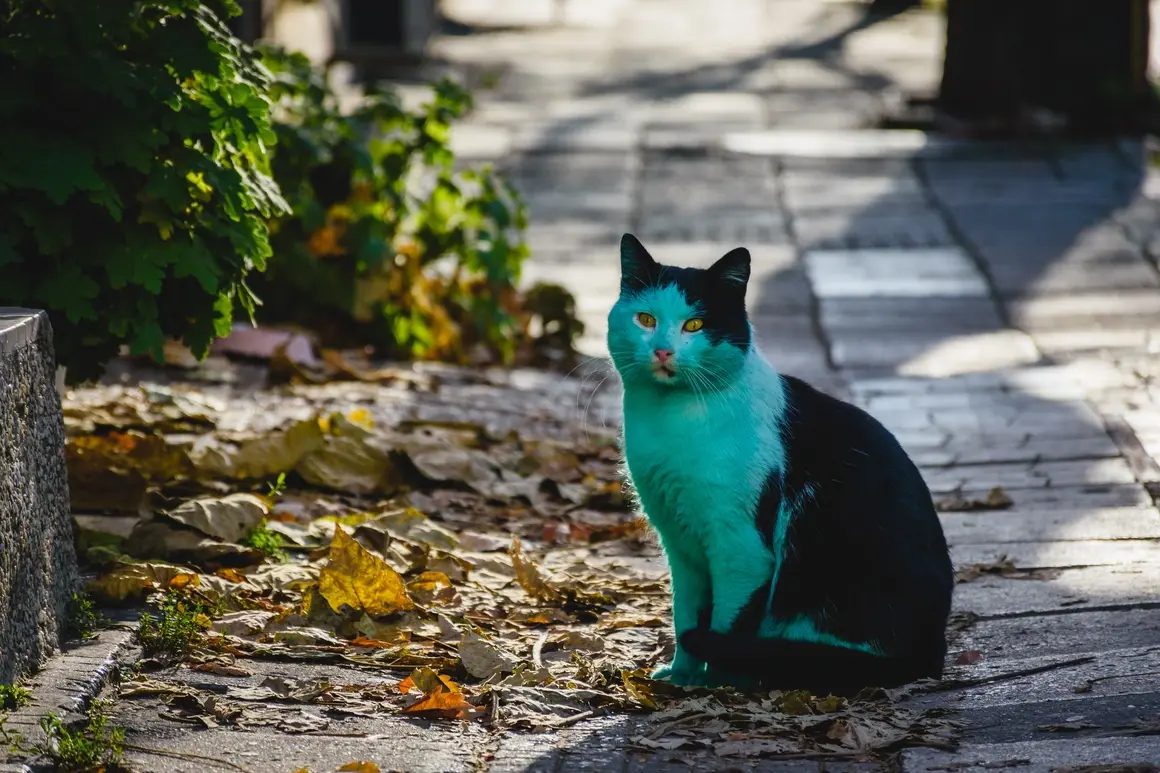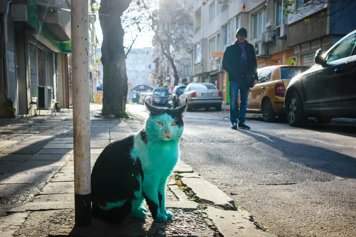 Още през декември 2014 граждани на Варна забелязаха зелена котка в центъра на града. Тогава стана ясно, че цветът ѝ се дължи на забравена бака с боя в гаража, в който зимувала.