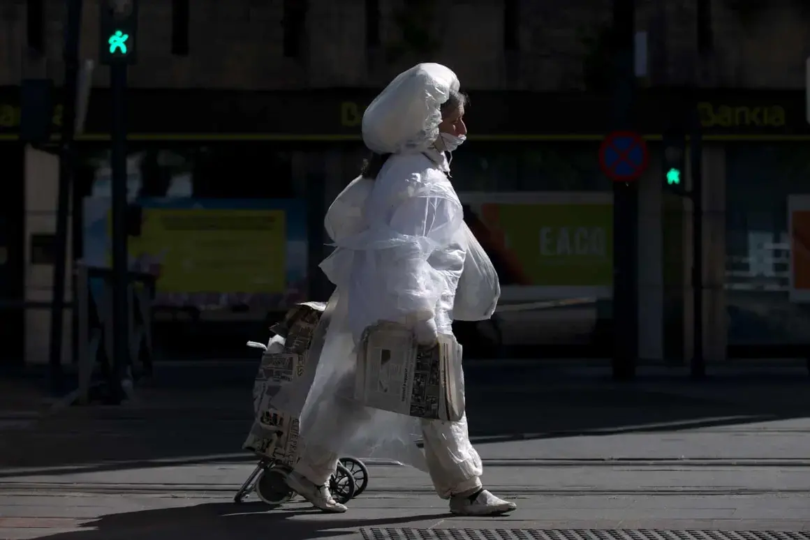 Гранада, Испания - жена отива на пазар, облечена в предпазен костюм