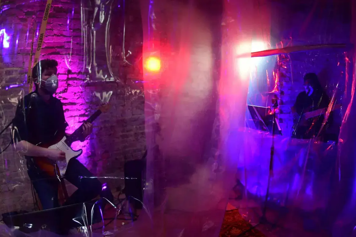 Вашингтон, САЩ - музикална група репетира преди излъчването на онлайн концерт