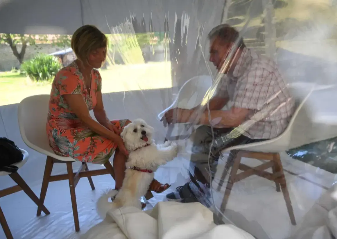 Бурбур, Франция - жена посещава съпруга си в пенсионерски дом