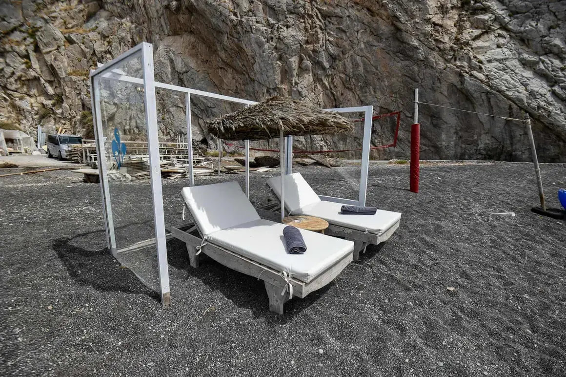 Санторини, Гърция - иновативен начин за спазване на социална дистанция на плажа