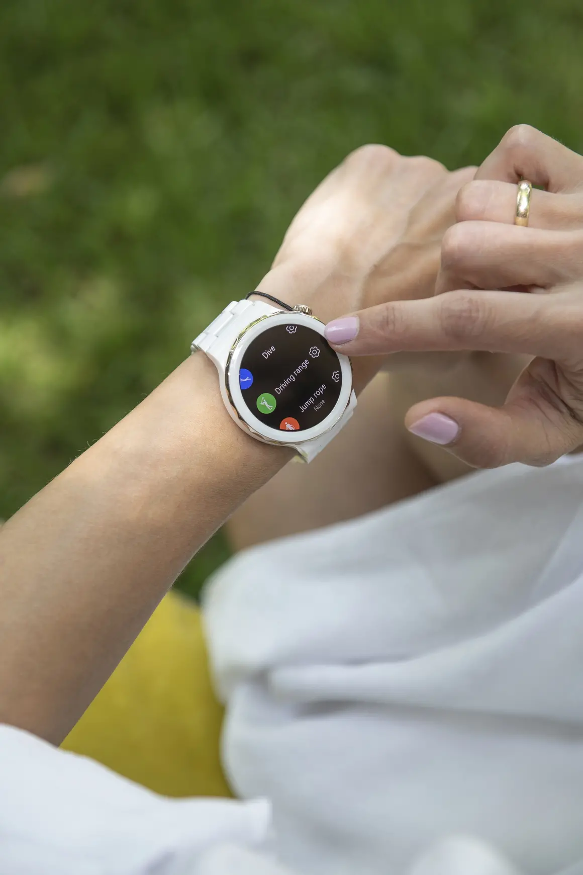 Екранът е 1.32-инчов (3,35 см.) AMOLED HD цветен дисплей с резолюция 466x466 HD. Операционната система е Harmony OS 2.0, което е най-добрият “мотор” на Huawei. И работи прекрасно с iOS.