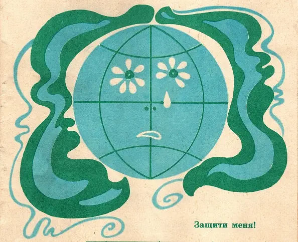 Постер, изобразяващ плачещата Земя. Дело на Рубен Сурянинов, 1986 година.