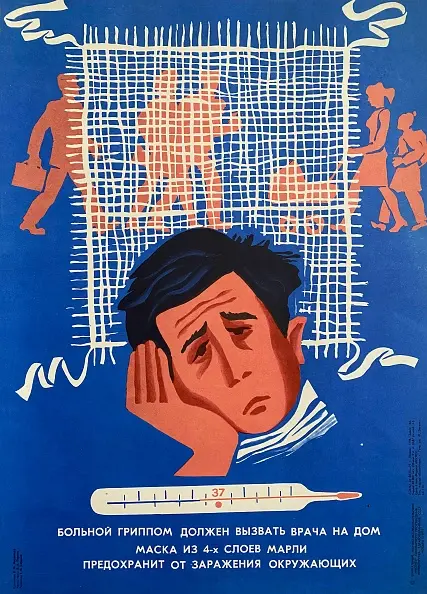 "Когато си болен от грип, извикай доктор у дома. Маска с четири пласта марля ще предпази хората покрай теб."