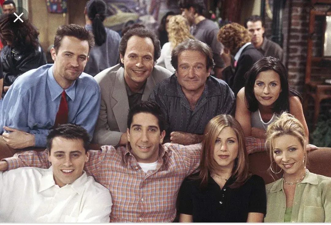 Двойката комици нахлува в студиото на "Приятели" и сценаристите ги молят да се включат. Горната сцена е изцяло импровизирана и заснета без монтаж.