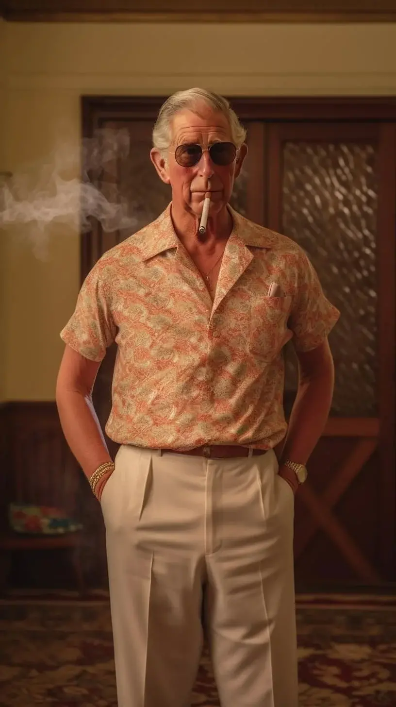 Истинският Чарлз има няколко снимки със слънчеви очила, но не и такива с цигара, хавайска риза и златни бижута.