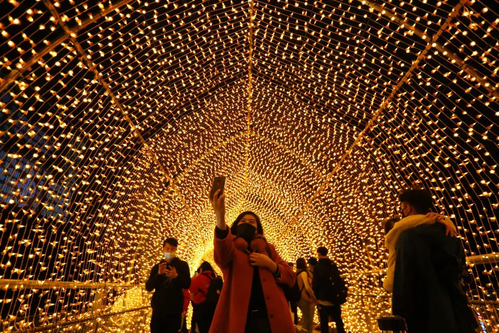 В Тайпе - столицата на Тайван, една от най-големите забележителности сред местните и туристите е цветният мост с коледни светлини. Много е красив не само в златисто, но и в розово, тъй като цветовете се сменят.