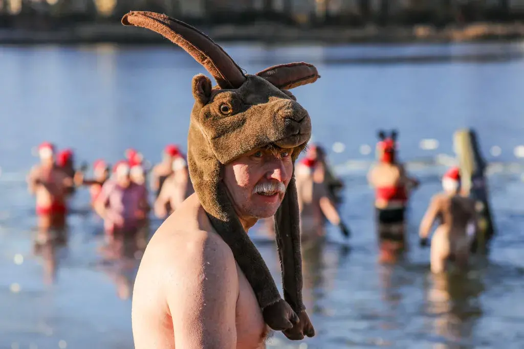 В столицата на Германия - Берлин, традицията за членовете на плувния клуб Berliner Seehunde повелява коледно потапяне в ледените води на езерото Оранке.