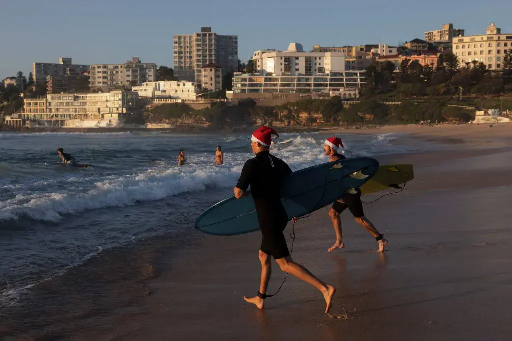Да, Коледа е, но е толкова горещо, че става за сърф. Това си казаха редица ентусиасти на Бонди Бийч в Сидни, Австралия.