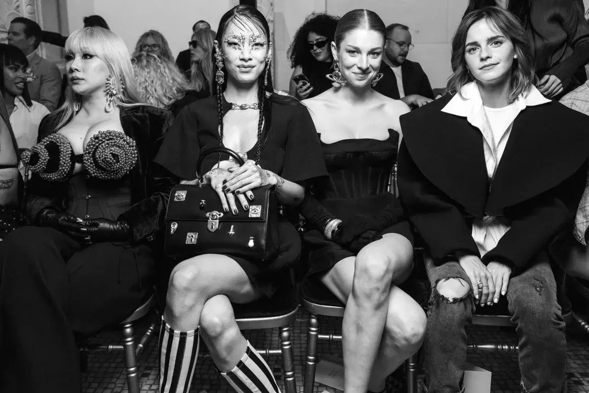 Сред гостите на модното шоу на Schiaparelli бяха актрисата Ема Уотсън, звездата от "Еуфория" Хънтър Шейфър и японската певица Рина Саваяма.