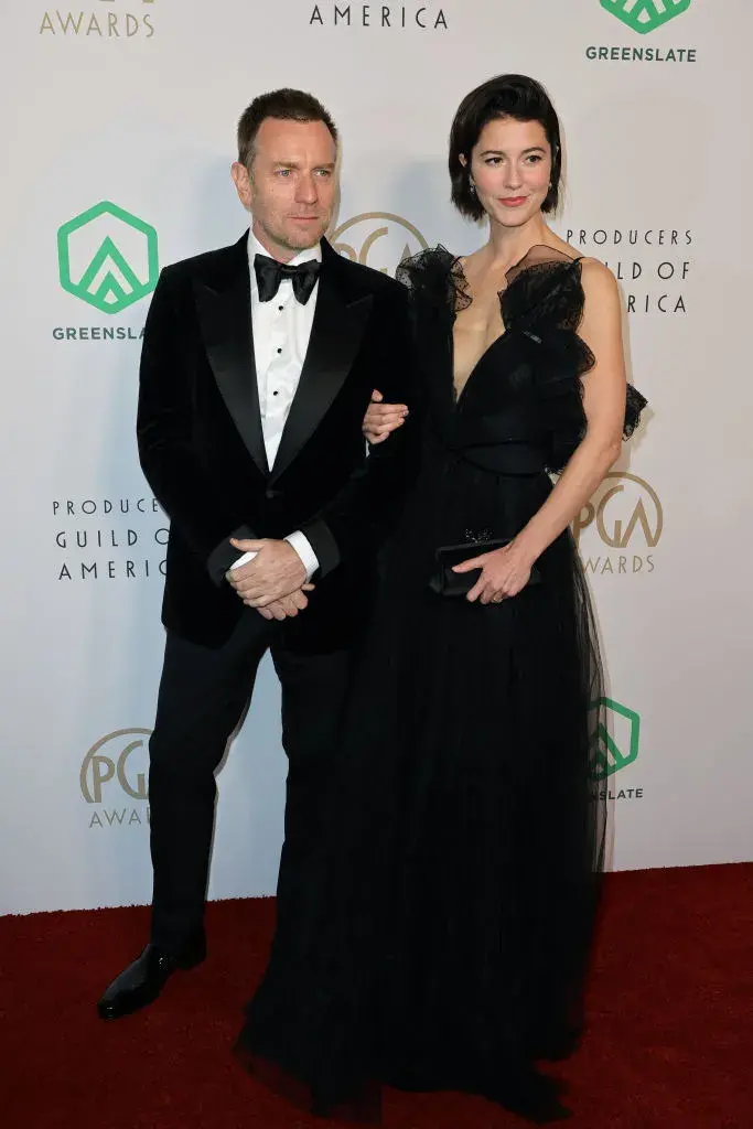 Юън Макгрегър и половинката му Мери Елизабет Уинстед. Двамата cе запознават пpез 2016 г. на cнимачната площадка cериала "Фopго". Мери Унсед има интересна черна рокля с дейтайли от шифон.