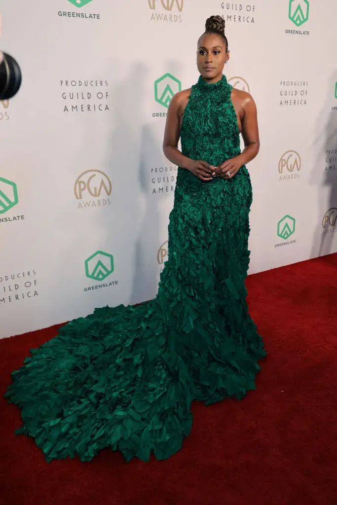 Иса Рей от Insecure изглежда бляскаво в рошава зелена рокля с шлейф и детайли от пайети.