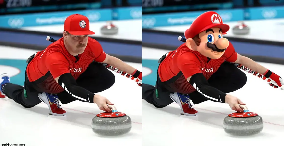 Самият олимпийски отбор на САЩ се пошегува с 32-годишния златен медалист от Пьончан 2018 с колаж в Twitter, който го сравнява със Супер Марио.