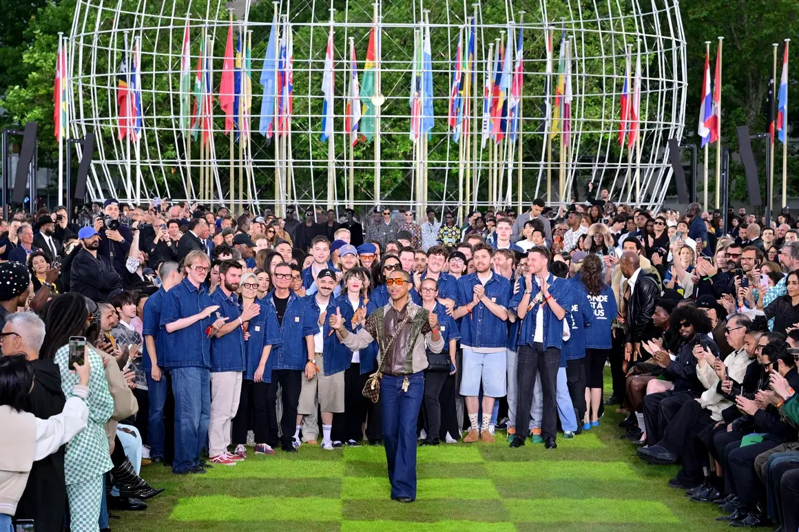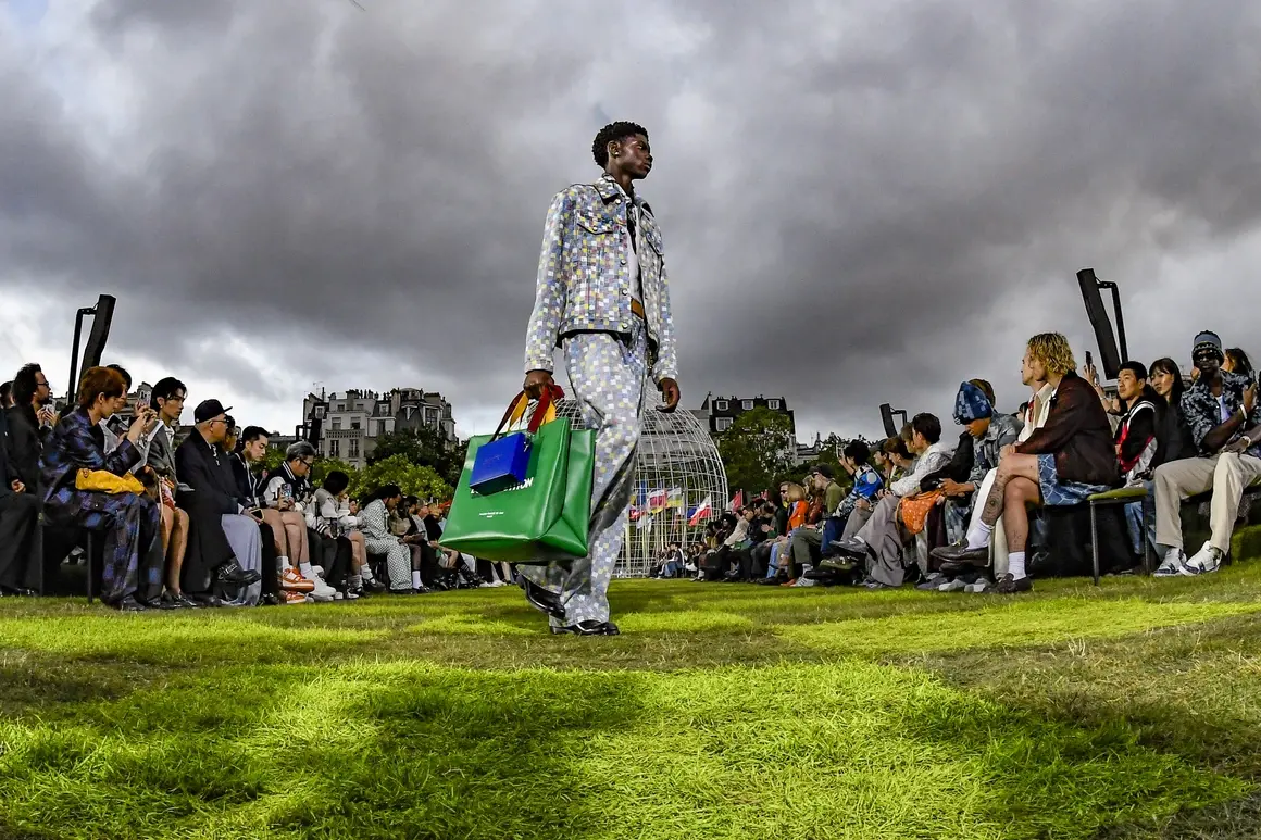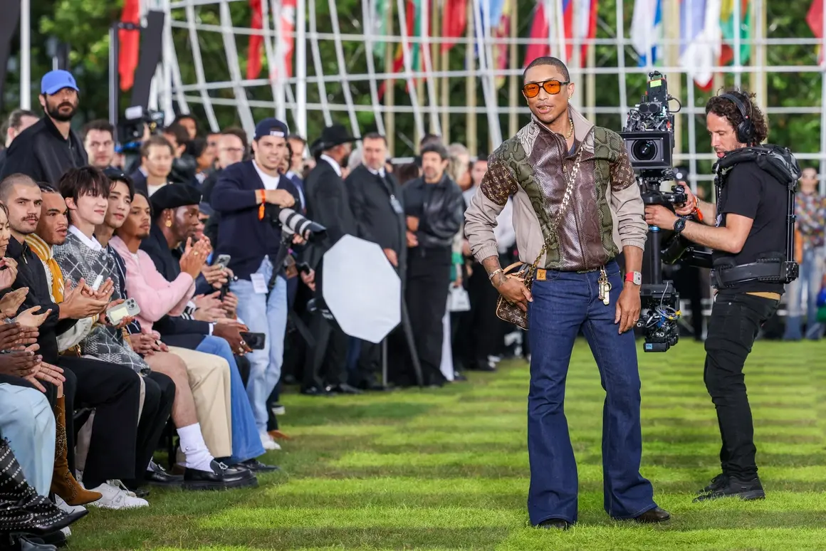 Четвъртото ревю на Фарел Уилямс като творчески директор на мъжкото облекло в Louis Vuitton се състоя в градините на сградата на ЮНЕСКО в Париж.