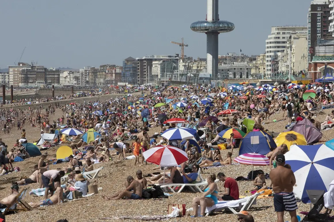 Плажът на Брайтън в Южна Англия беше препълнен с хора - мерките за социална дистанция заради Covid-19 стават все по-трудно изпълними в условията на августовските жеги.