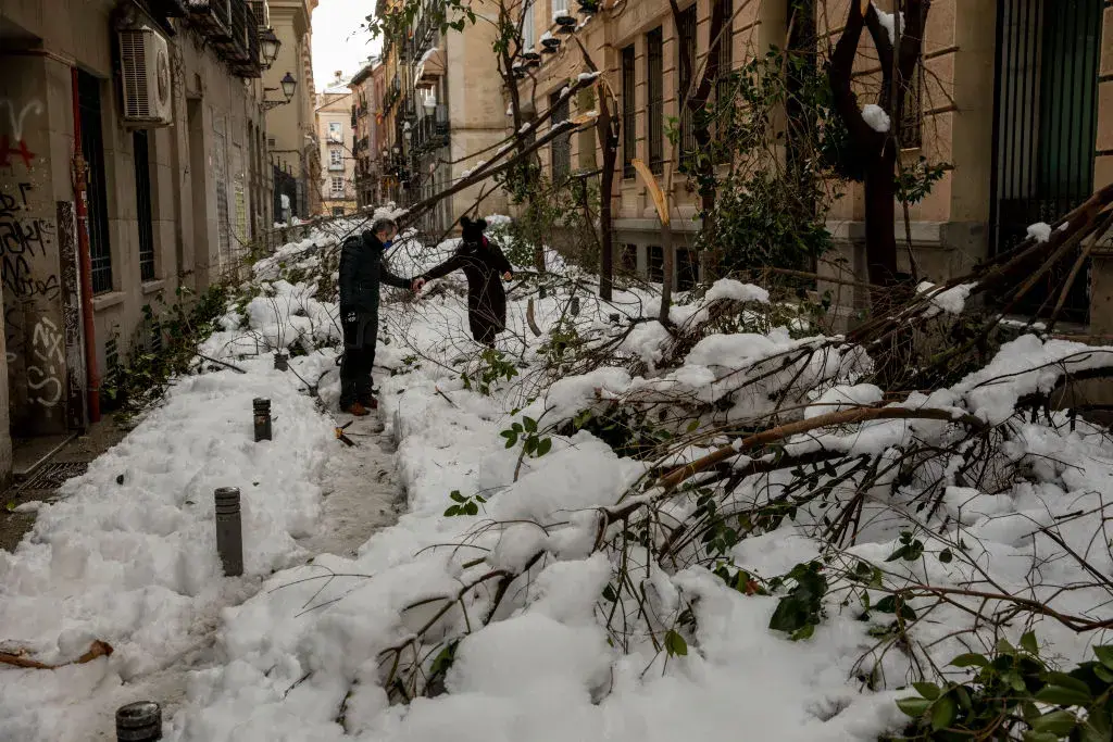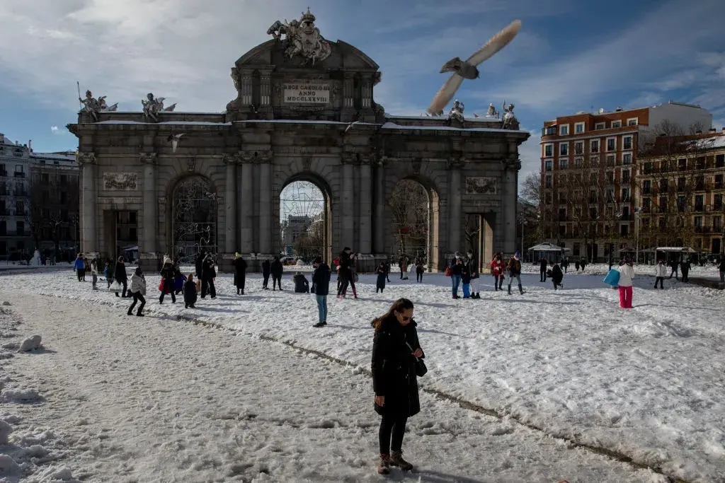 Снежна буря, наречена Филомена, блокира испанската столица. Стотици полети бяха отменени. Много пътища останаха непроходими. В неделния ден испанците бавно се завръщаха към нормалния живот.