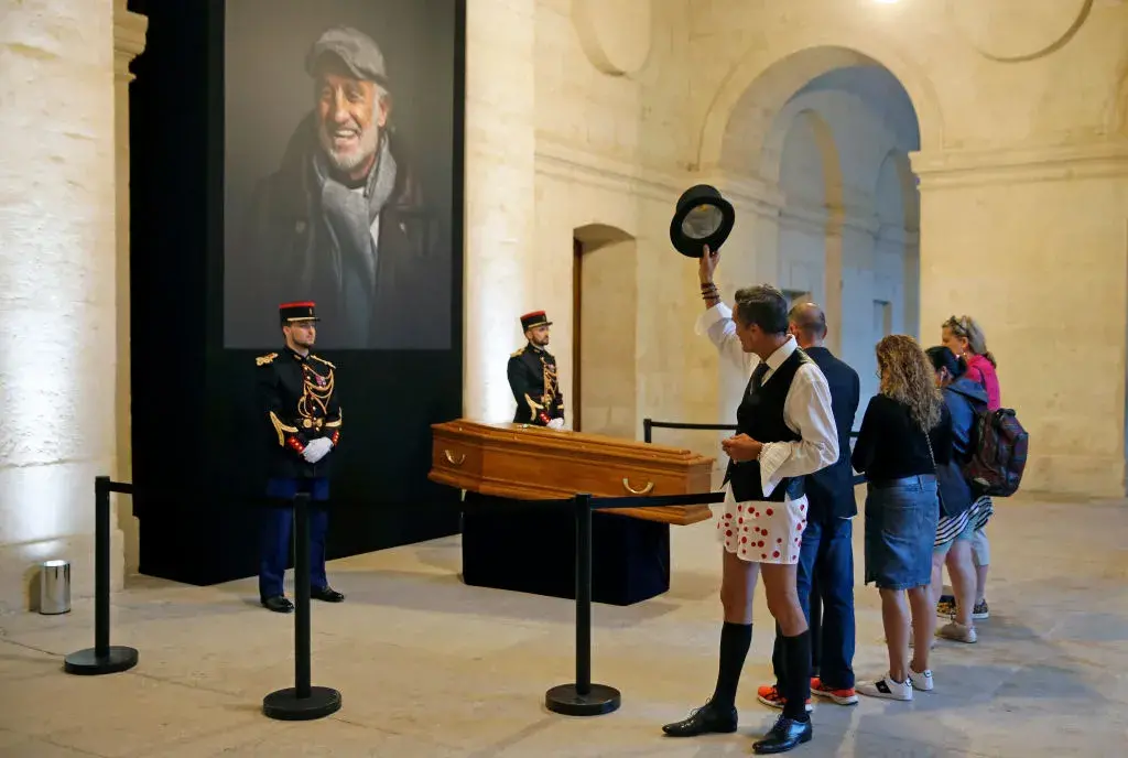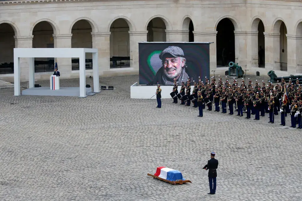 Оркестърът на Националната гвардия изпълни "Марсилезата". Актьорът, издигнат за заслугите си в звание Велик офицер на Националния орден на Почетния легион, получи посмъртно военни почести от френската авиация, от флота и сухопътните войски.