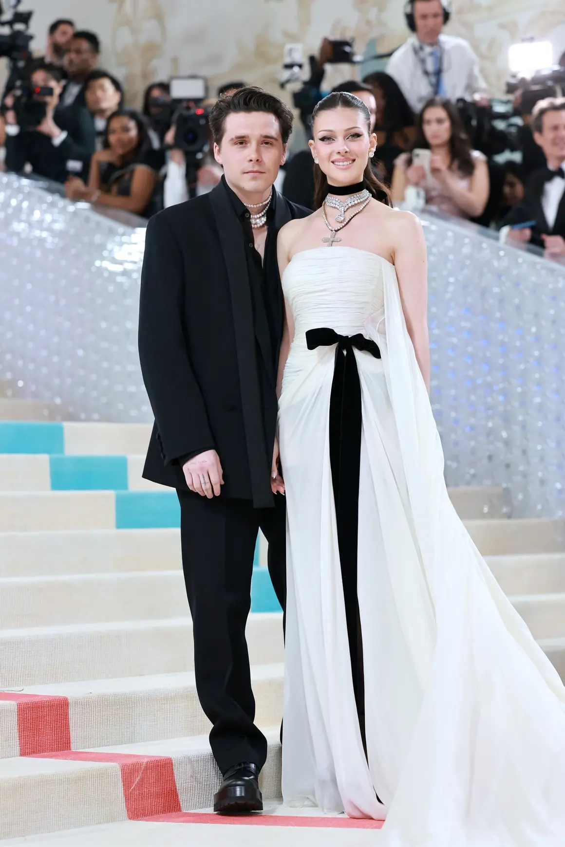 Бруклин Бекъм и съпругата му Никола Пелц Бекам в калсически модели на Valentino.