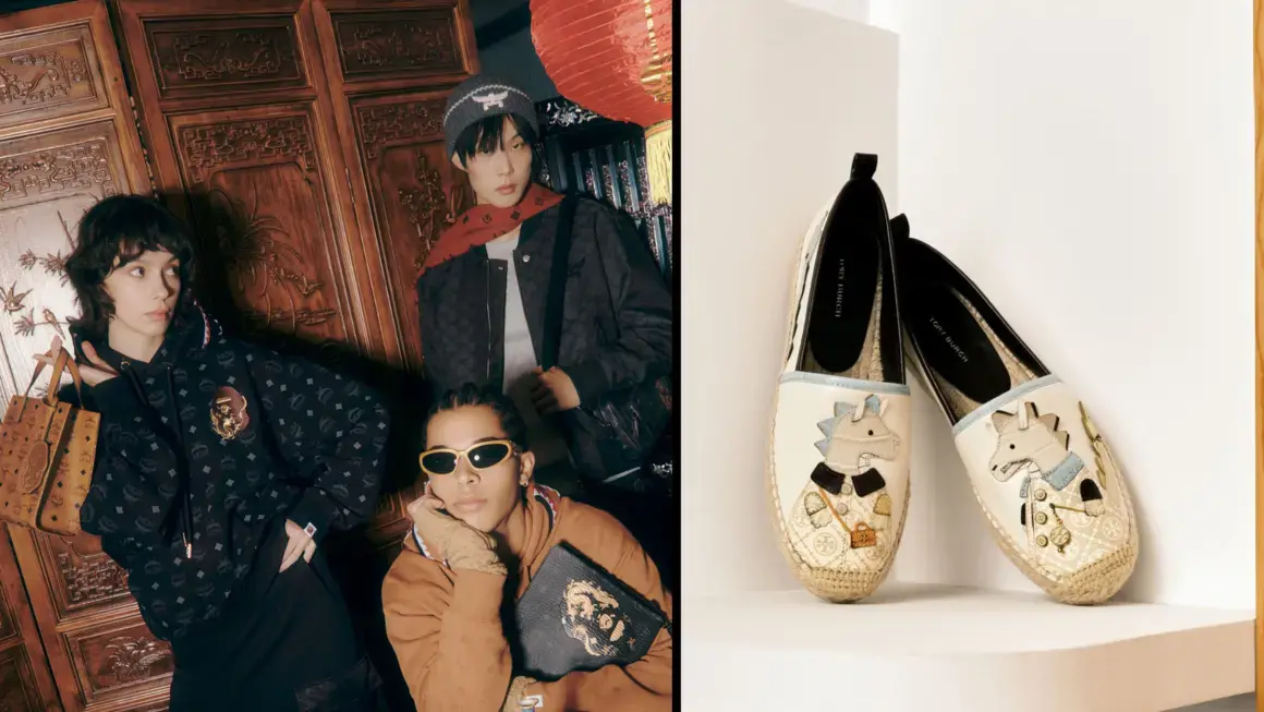 Колекцията за Лунната нова година на Tory Burch е в неутрални цветове. Чантите и пормонетата са украсени с облаци, които представляват царството на дракона. Обувките от основната снимка на галерията също са част от китайската новогодишна колекция на бранда.