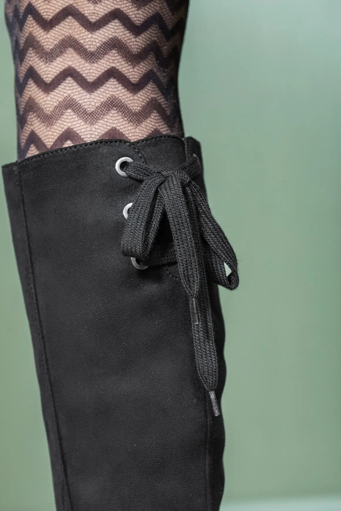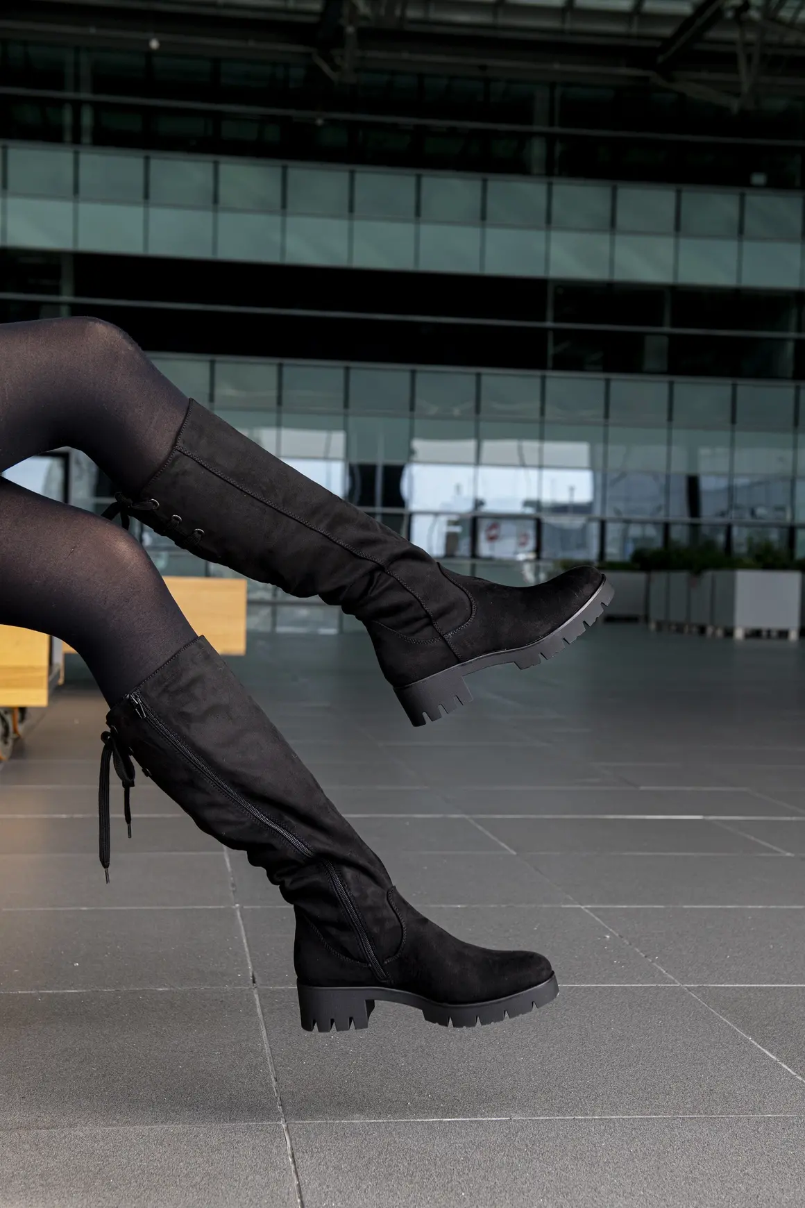 И този сезон високите до коляното ботуши от плат или тънка кожа са все така актуален тренд, само че сега са съчетани си по-груба подметка.