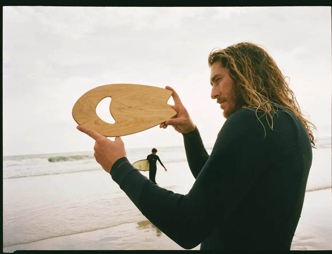 Плажен стол, преносимо барбекю, масичка за кафе във формата на сърф (на снимката), пончо за плаж и чанта за отпадъци са някои от акцентите в колекцията.