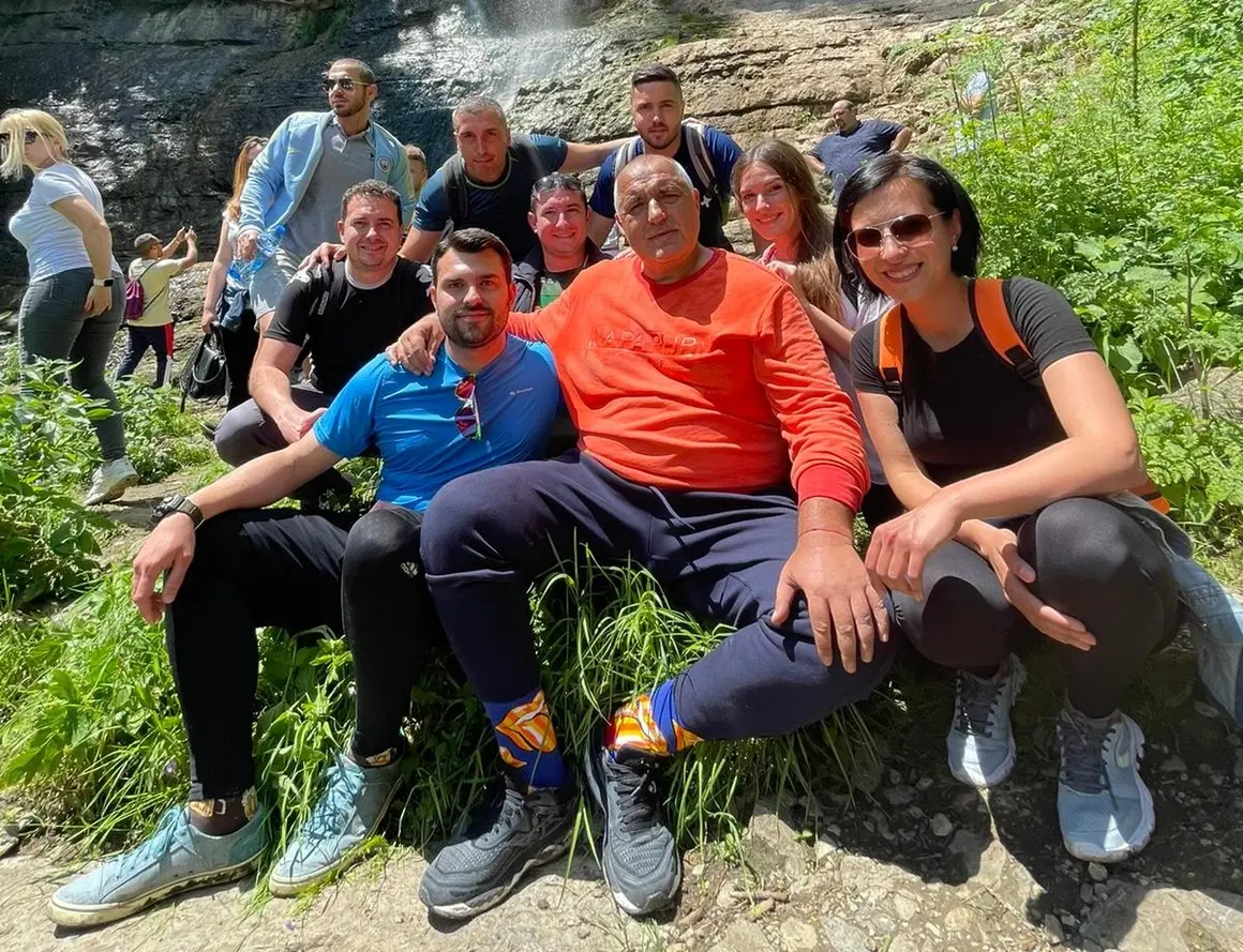 Анцуг, загащен в Happy Socks с логото на Rolling Stones от Бойко Борисов. Бившият премиер, който не слизаше от джипката през последната предизборна кампания, този път изненадващо се намери на неделен планински поход с актива на ГЕРБ край Своге.