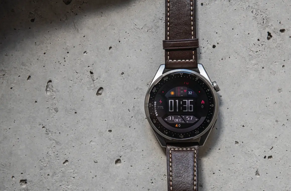 Часовникът се предлага с кожена каишка или титаниева верижка и има AMOLED дисплей от най-висок клас. Операционната система HarmonyOS и мощният процесор правят възможна поддръжката на прецизни и детайлни изображения за циферблатите, понякога с 3D ефект.