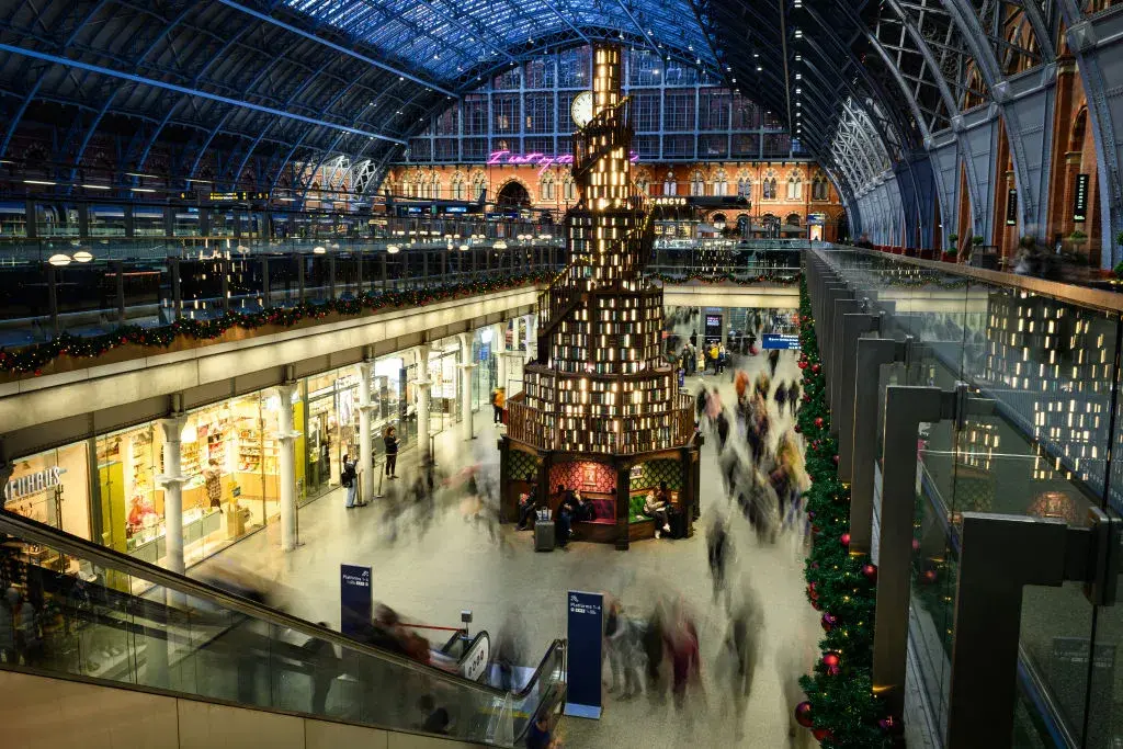 Ако имате път към Лондон тази Коледа, задължително посетете гарата "Сейнт Панкрас", за да видите страхотната им елха, наподобяваща библиотека от няколко етажа с вити стълби.