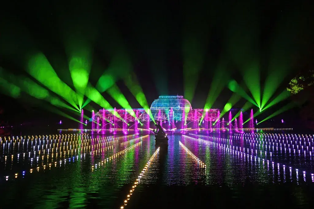 Прочутата ботаническа градина "Кю гардънс" в Лондон откри празничния сезон със страхотно светлинно шоу.