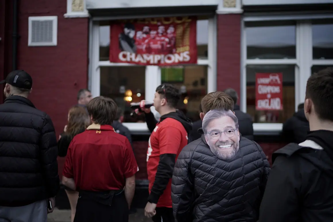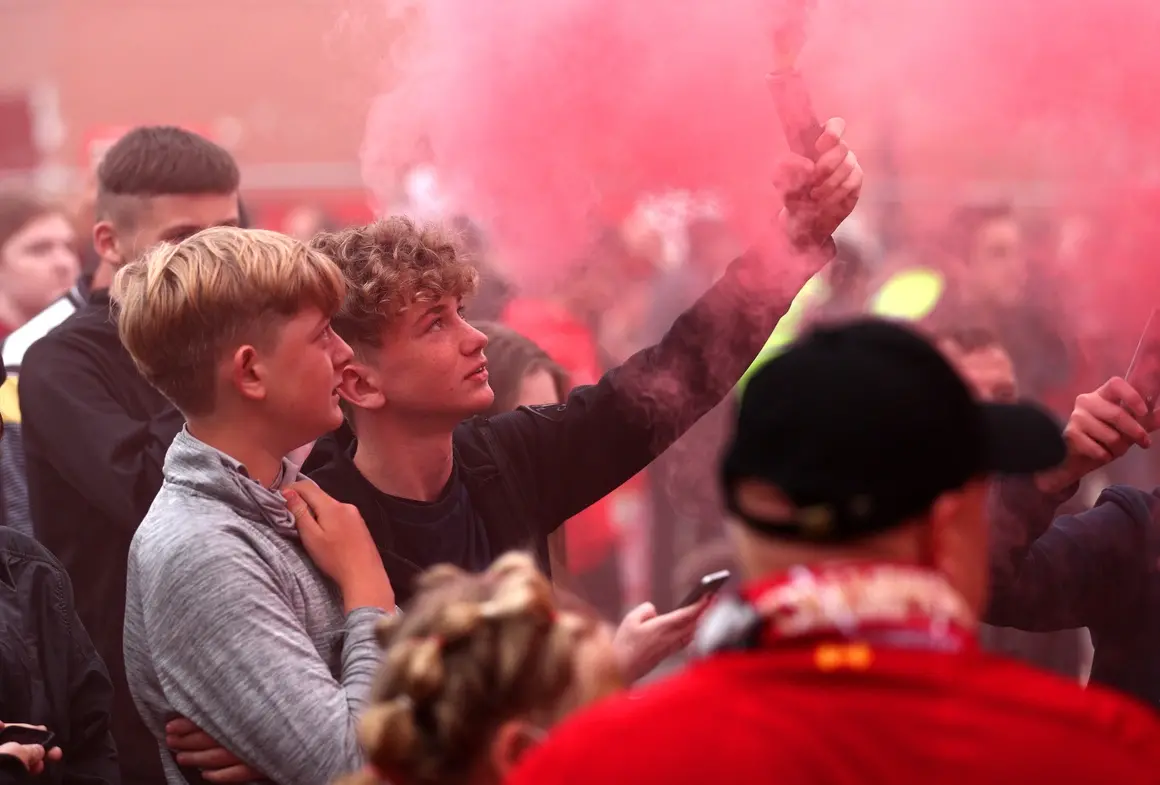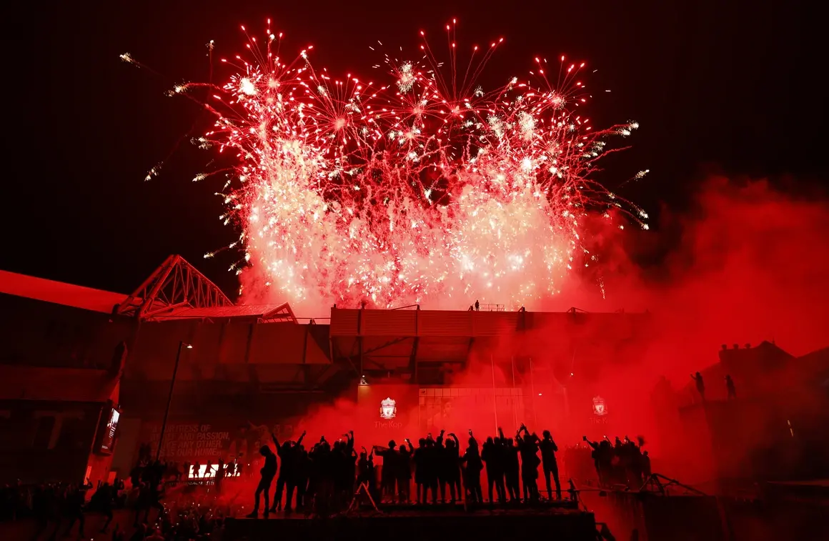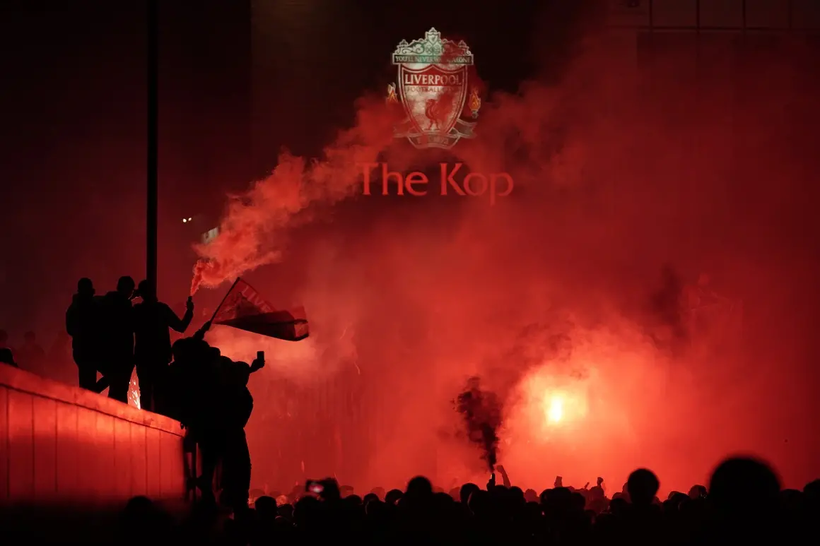 Атмосферата около "Анфийлд" в нощта на шампионите трудно може да се опише с думи: фойерверки, факли и хиляди фенове, нетърпеливи да отпразнуват купата, изпълниха пространството около стадиона.