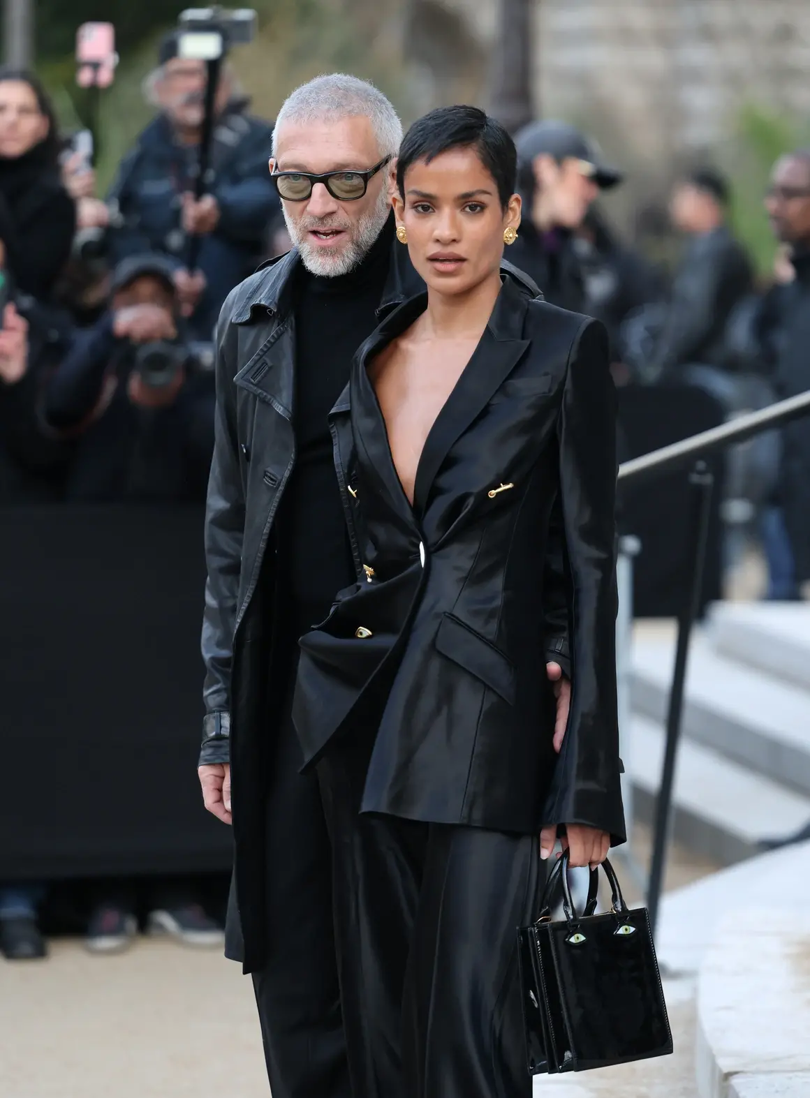 Венсан Касел и бразилският модел Нара Баптиста преди шоуто на Schiaparelli