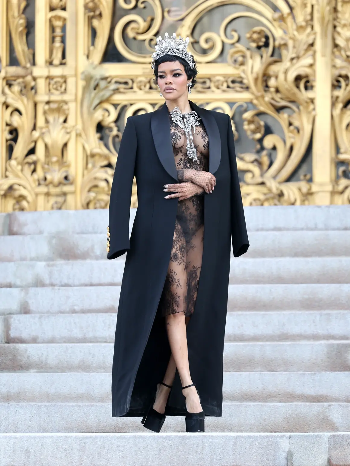 Актрисата Теяна Тейлър от One Battle After Another е кралицата на Schiaparelli с гигантска корона и брошка.