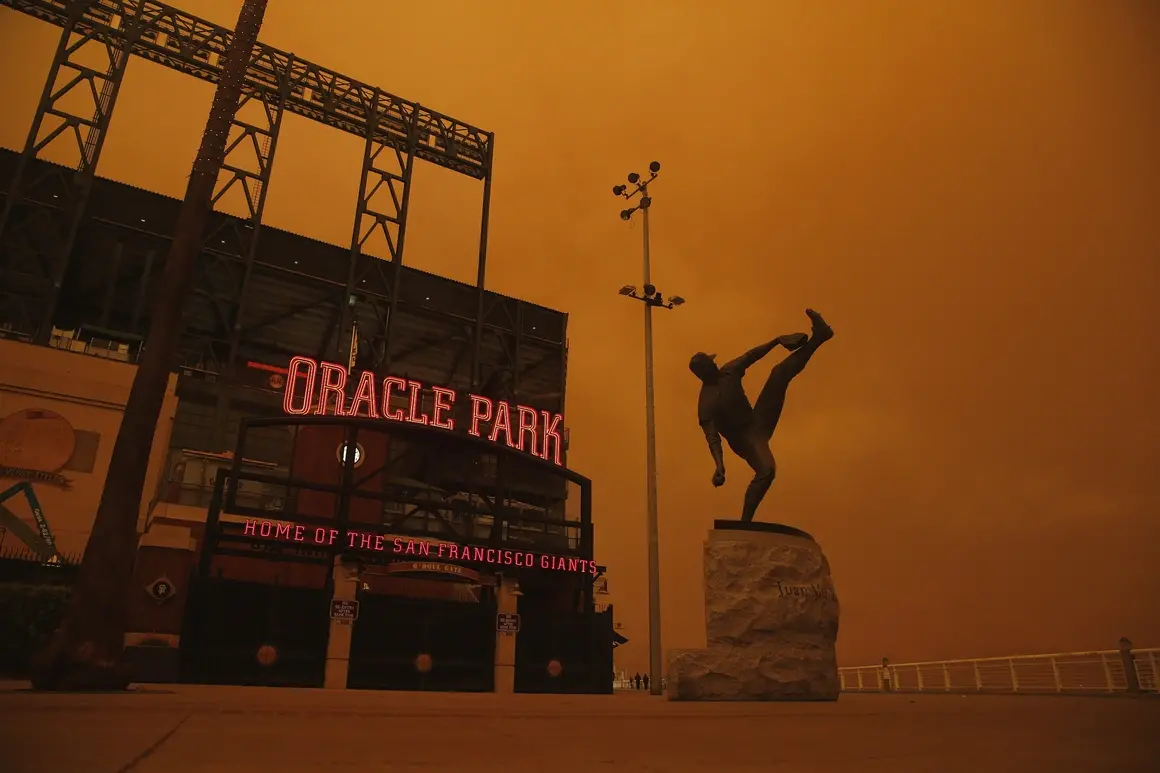 Димната завеса около стадиона на San Francisco Giants: Бейзболният отбор реши, че няма да отлага срещата си със Seattle Mariners. Екипът на Giants следи качеството на въздуха и преценява, че засега няма опасност за здравето на играчите. Разположението на града край брега на океана помага за прочистването на най-ниския слой от въздуха, така че хората все още не усещат мирис на пушек въпреки "ръждивия" цвят на небето.