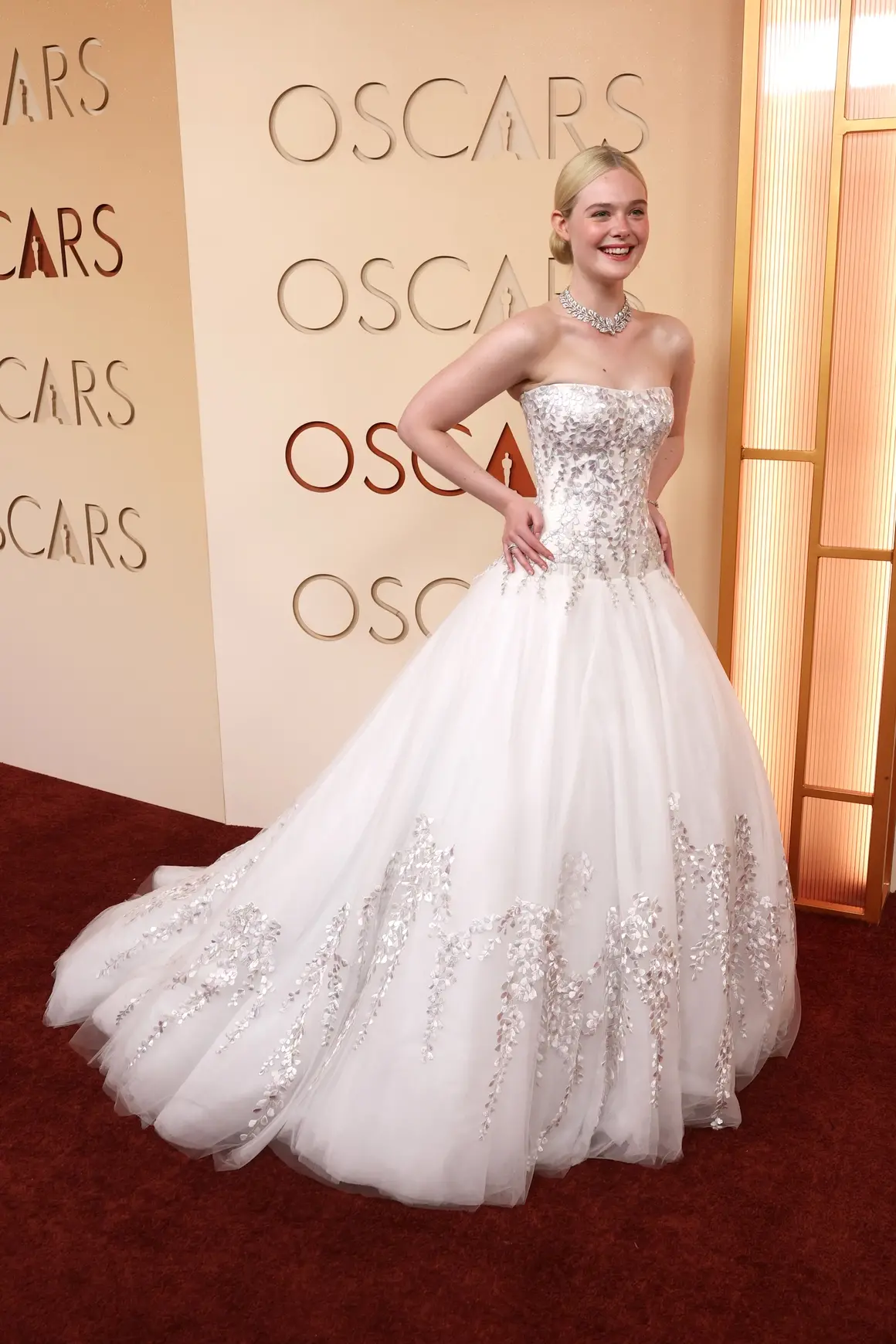 Ел Фанинг носеше сребристо-бяла рокля на Givenchy