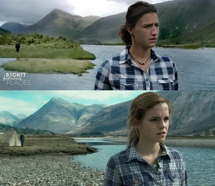 Кадърът е заснет в Глен Етив, Шотландия. Във филма Хармаяни е стъпила върху камъни, но се оказва, че на реалната локация няма такива. С перфектния ъгъл на камерата обаче се постига всичко.